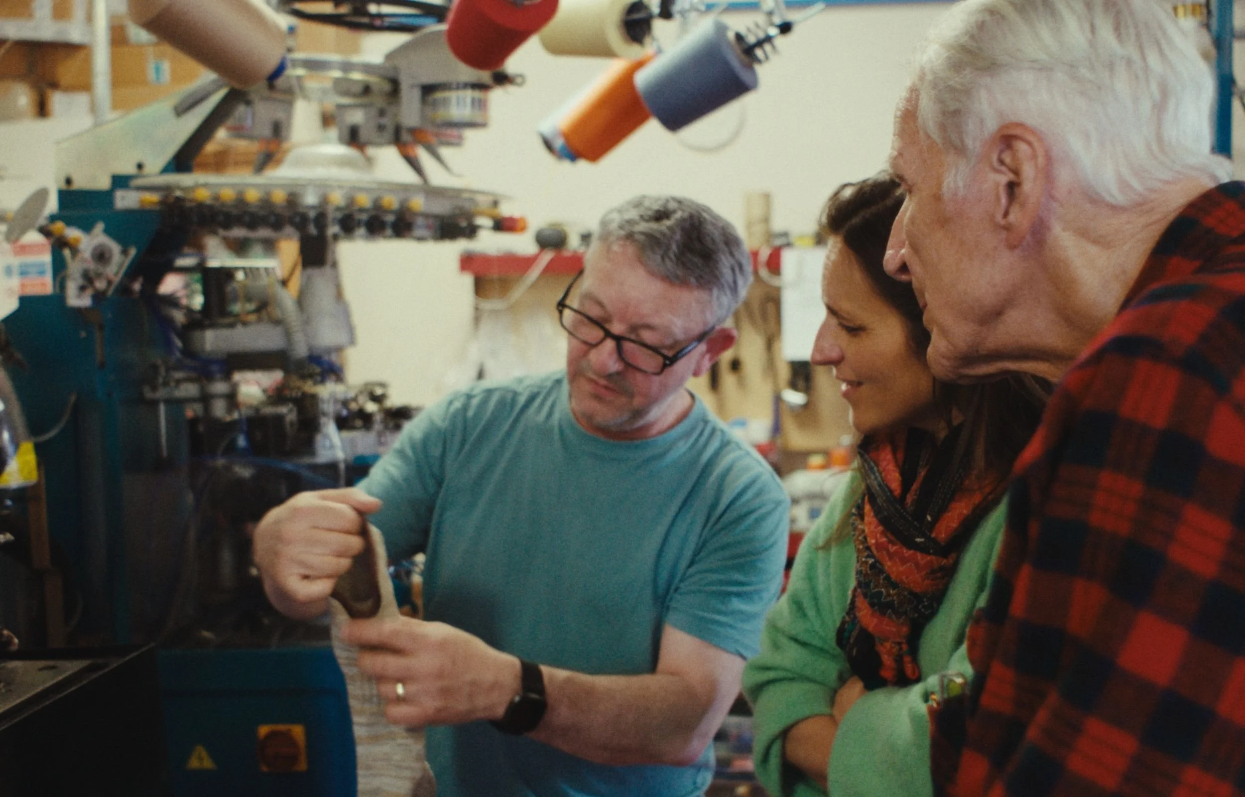 Our Wise Guy socks are made in Scotland at a small, husband-and-wife-run factory in Moray, on the edge of the Highlands. Steve and his team use UK-sourced yarns and traditional Italian circular-knit machines renowned for their precision and longevity. The yarn is 100% cotton (not a synthetic blend), with small amounts of other fibres added only where needed for shape and lasting quality. The unusual gauge of the machine for this type of sock gives each pair a beautifully cushioned, slightly chunky feel.
